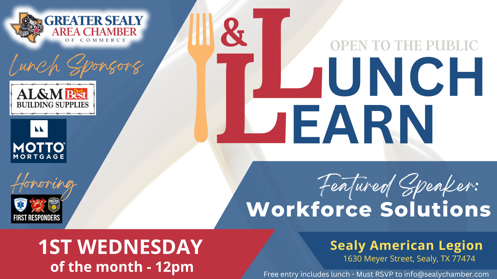 Lunch will be provided so please RSVP by the Friday before to receive a lunch. Thank you Sealy American Legion for the sponsorship of your hall for this event. This event will be sponsored by: